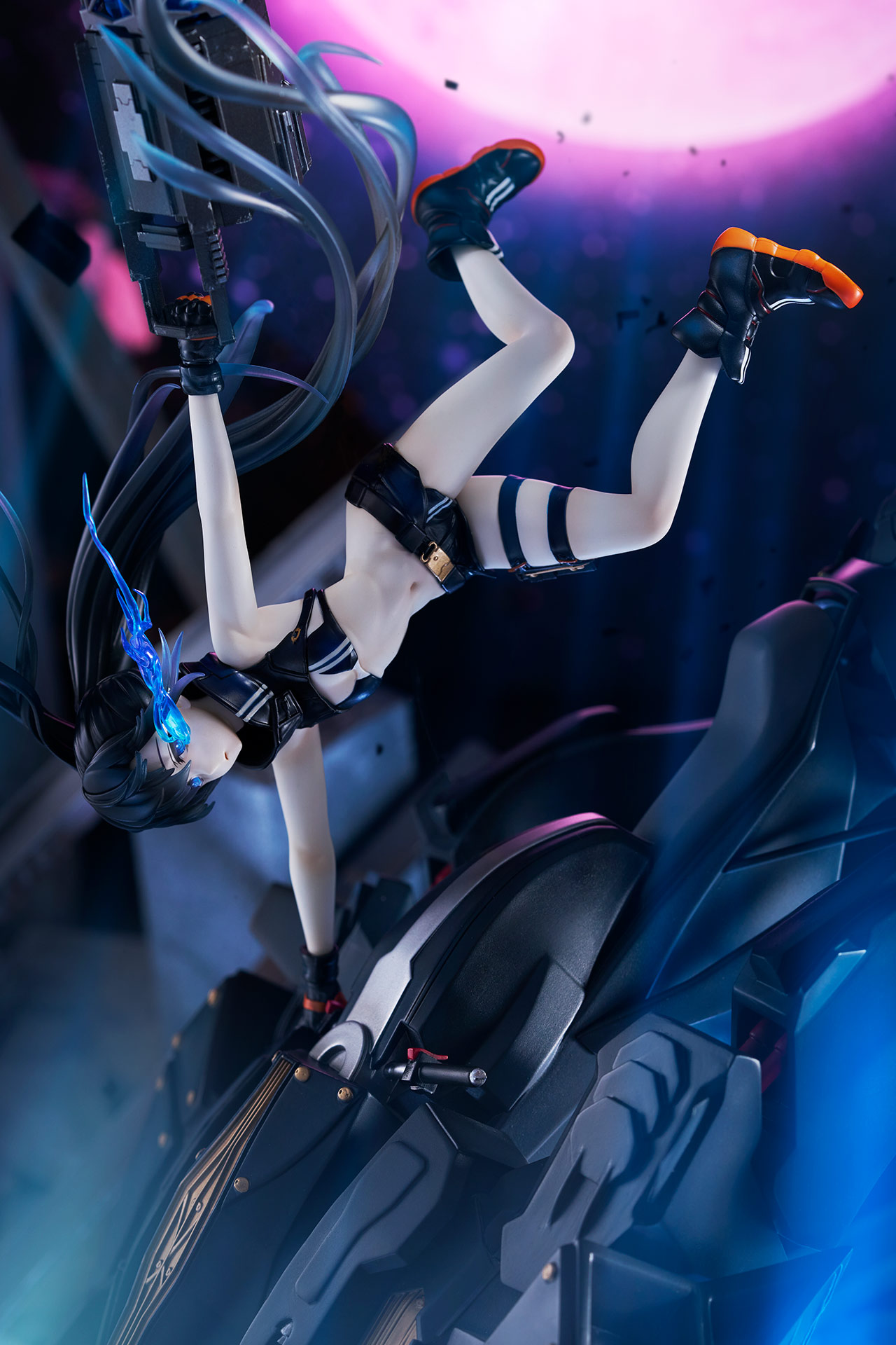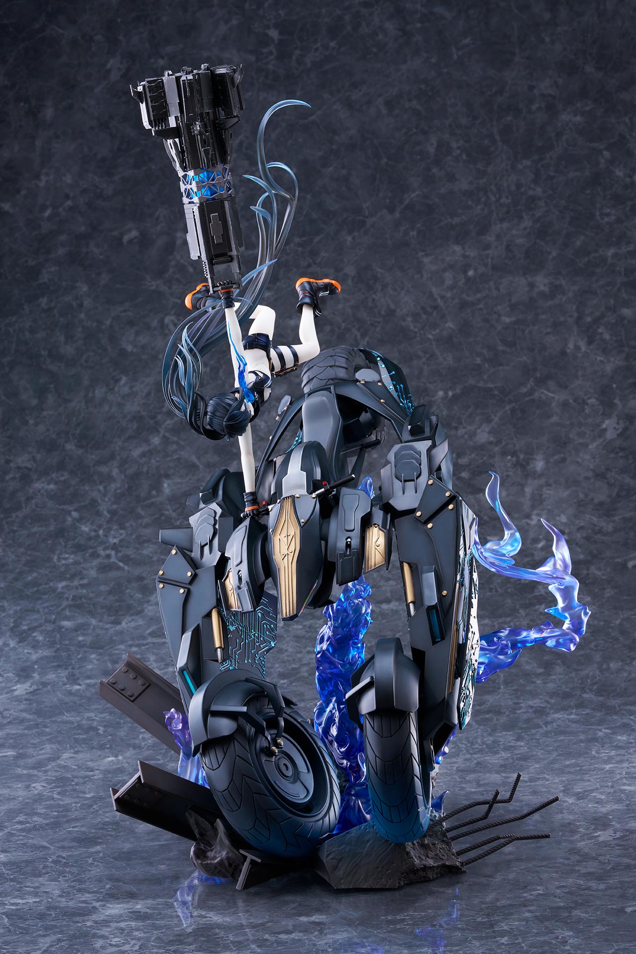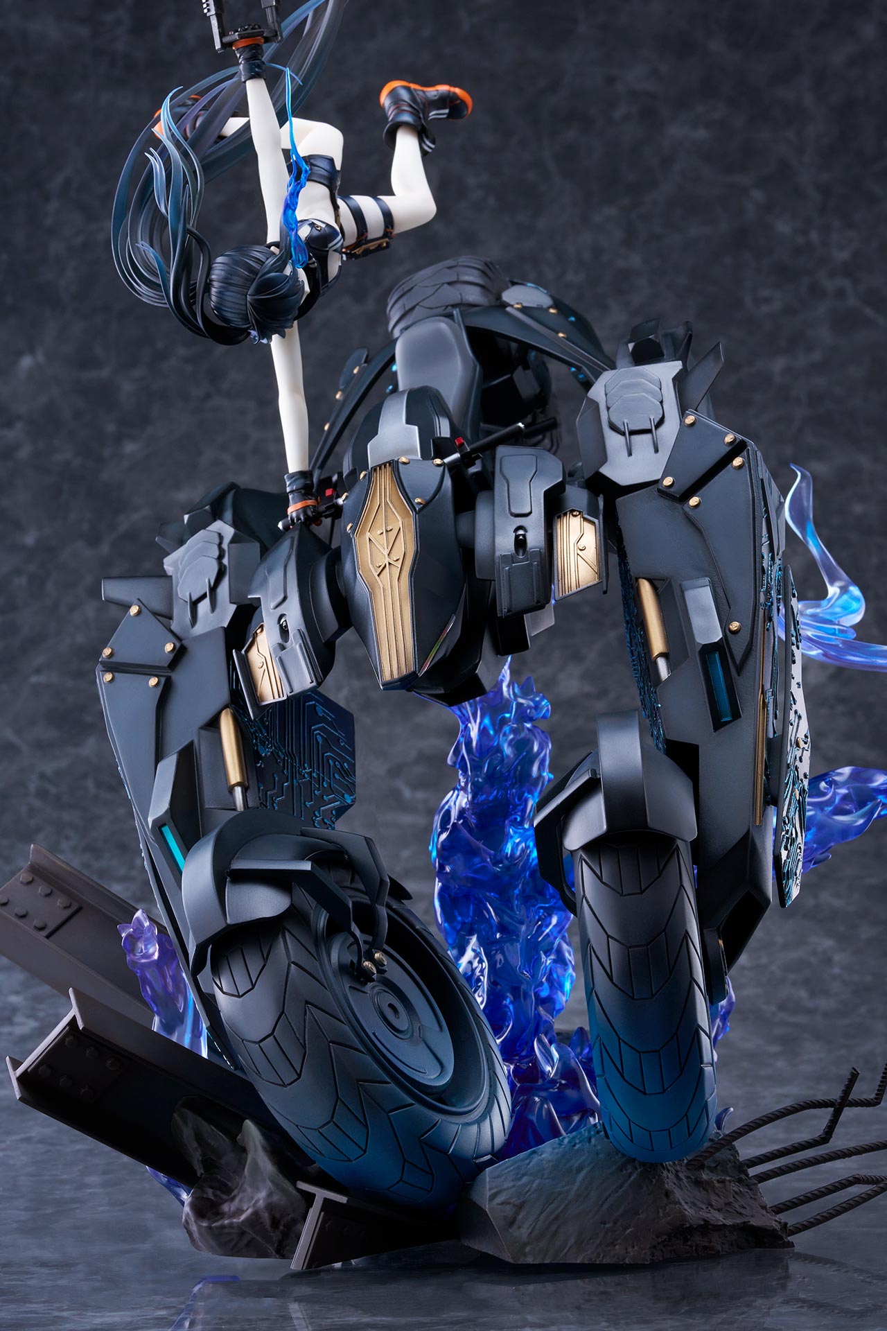作り込まれた瓦礫や青くゆらめく大きな炎のエフェクトやエンプレスの髪の流れが目線を上方へ誘導。ブラックトライク、エンプレスからコイルガンへと流れるように動かし、パーツ一つひとつの作りこみを隅々までお楽しみいただけます。