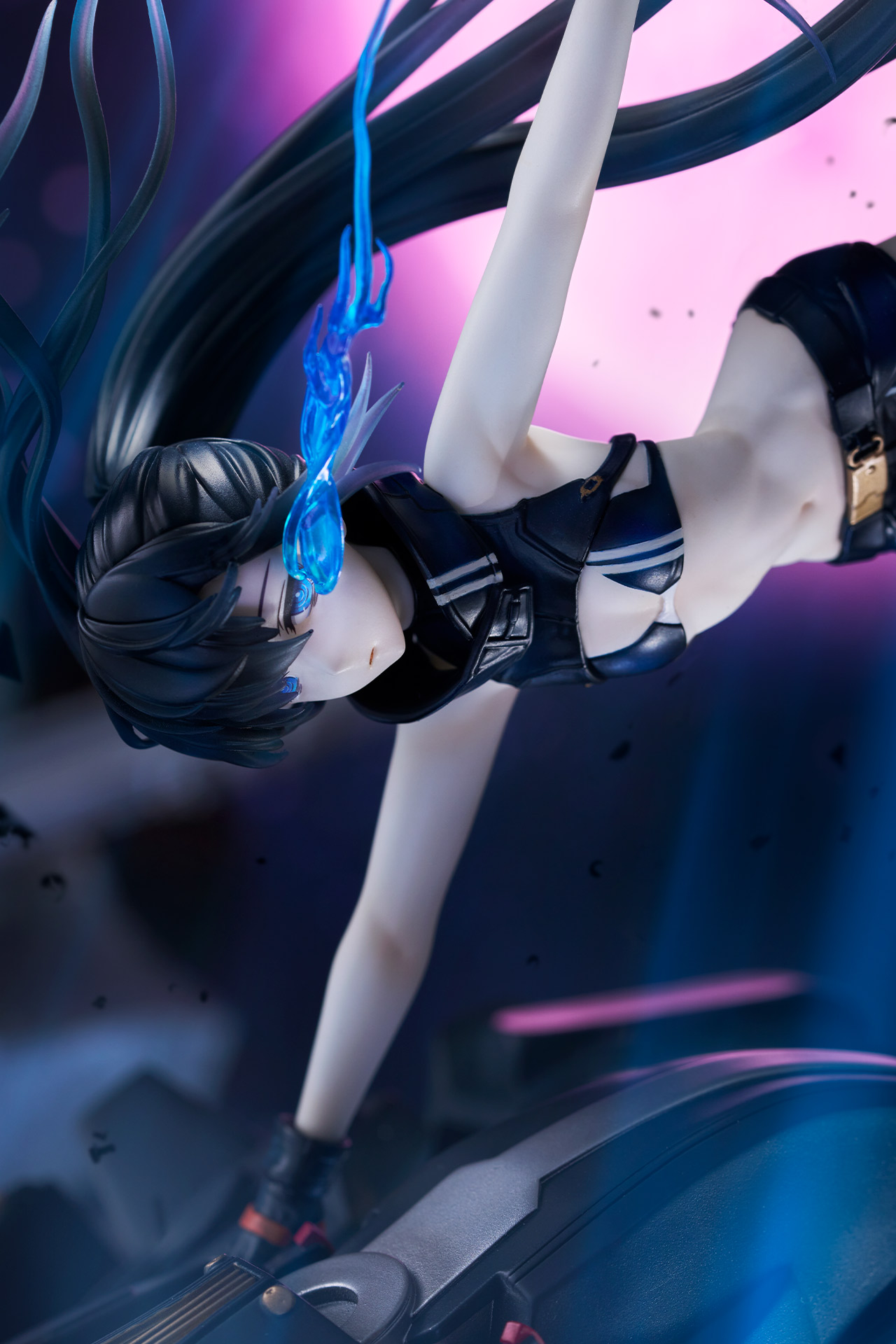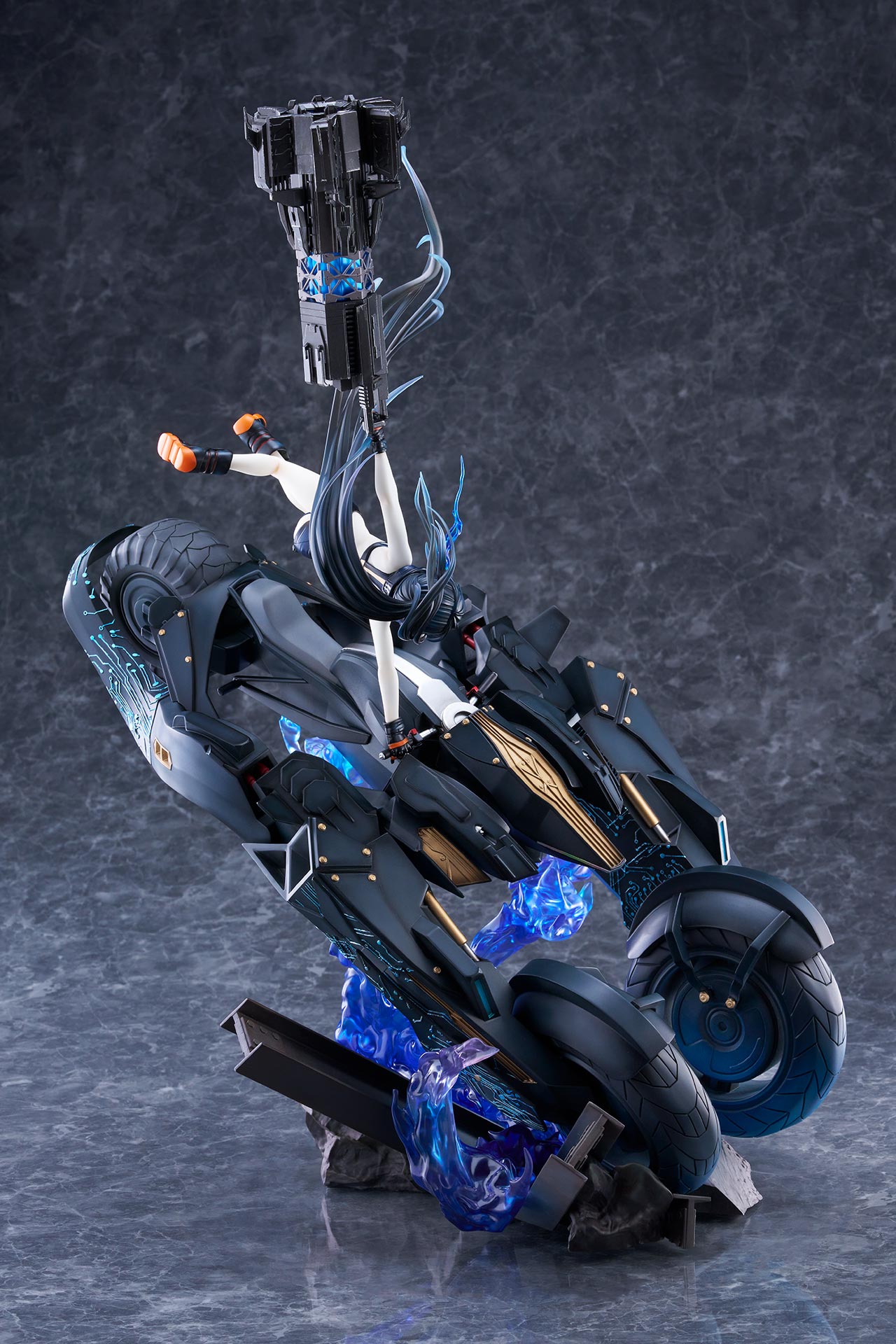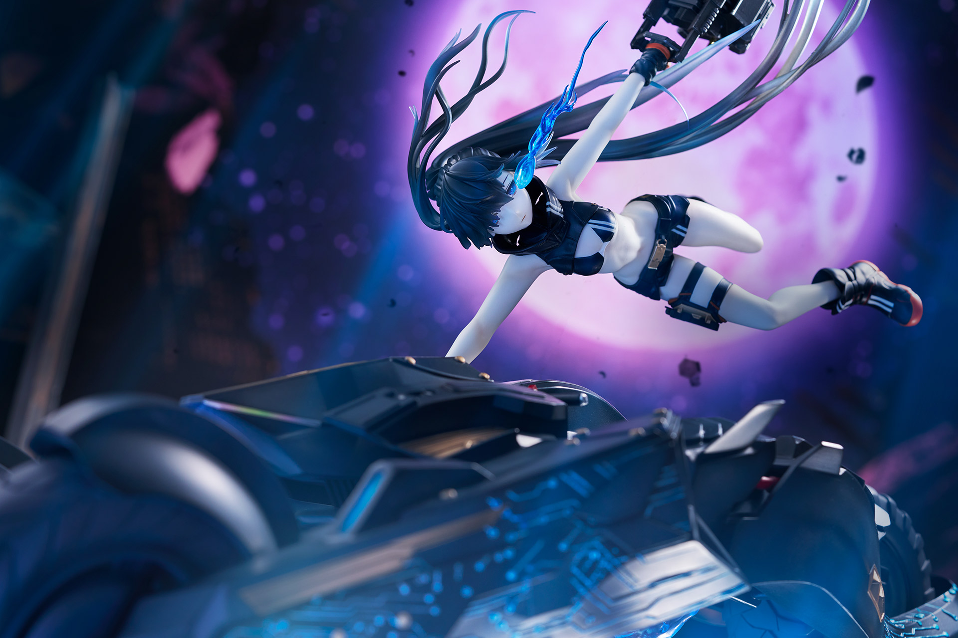 作り込まれた瓦礫や青くゆらめく大きな炎のエフェクトやエンプレスの髪の流れが目線を上方へ誘導。ブラックトライク、エンプレスからコイルガンへと流れるように動かし、パーツ一つひとつの作りこみを隅々までお楽しみいただけます。