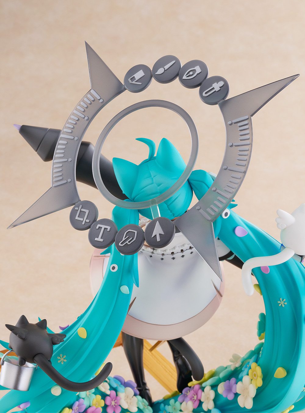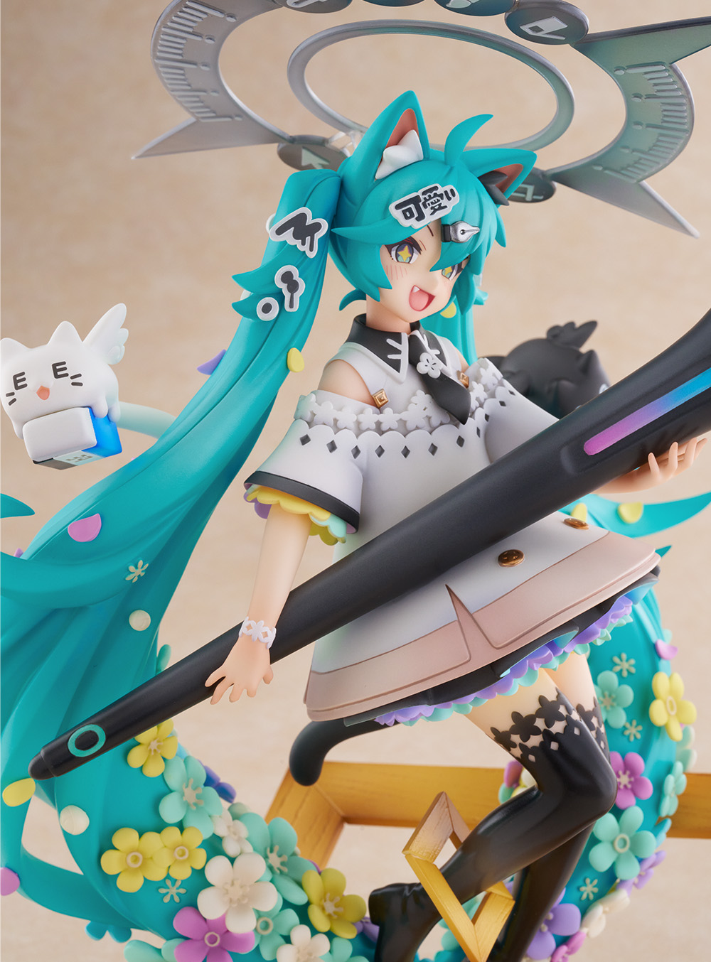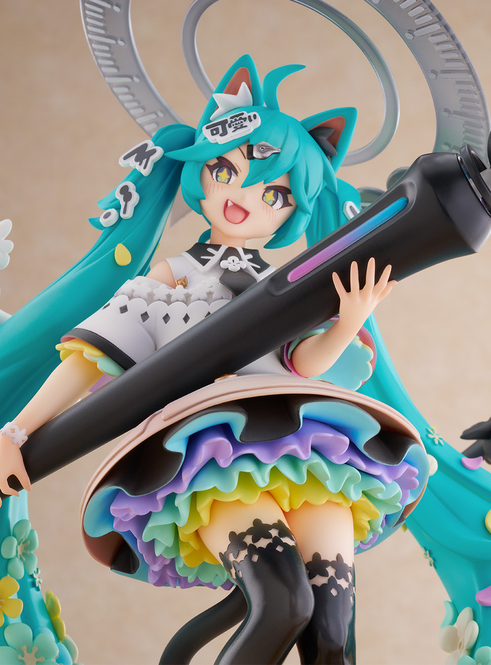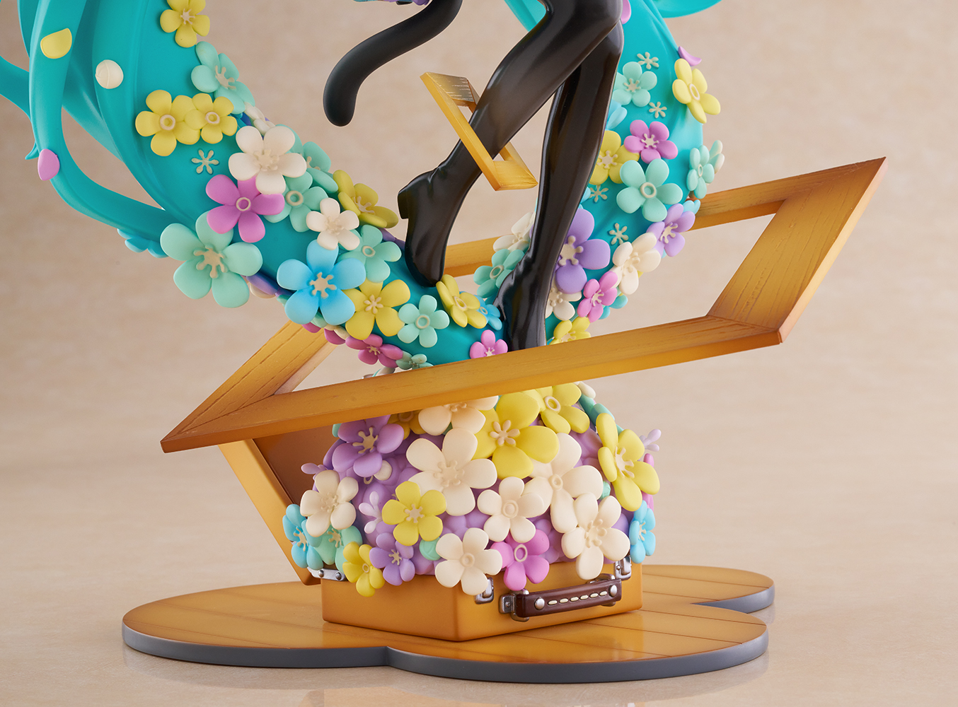 フィギュア全体にあしらわれたカラフルなお花は、単に彩度を上げてしまうと主張が強くなりすぎてしまうため、あえて彩度を抑えつつ、華やかさと可愛らしさのバランスを重視しました。
